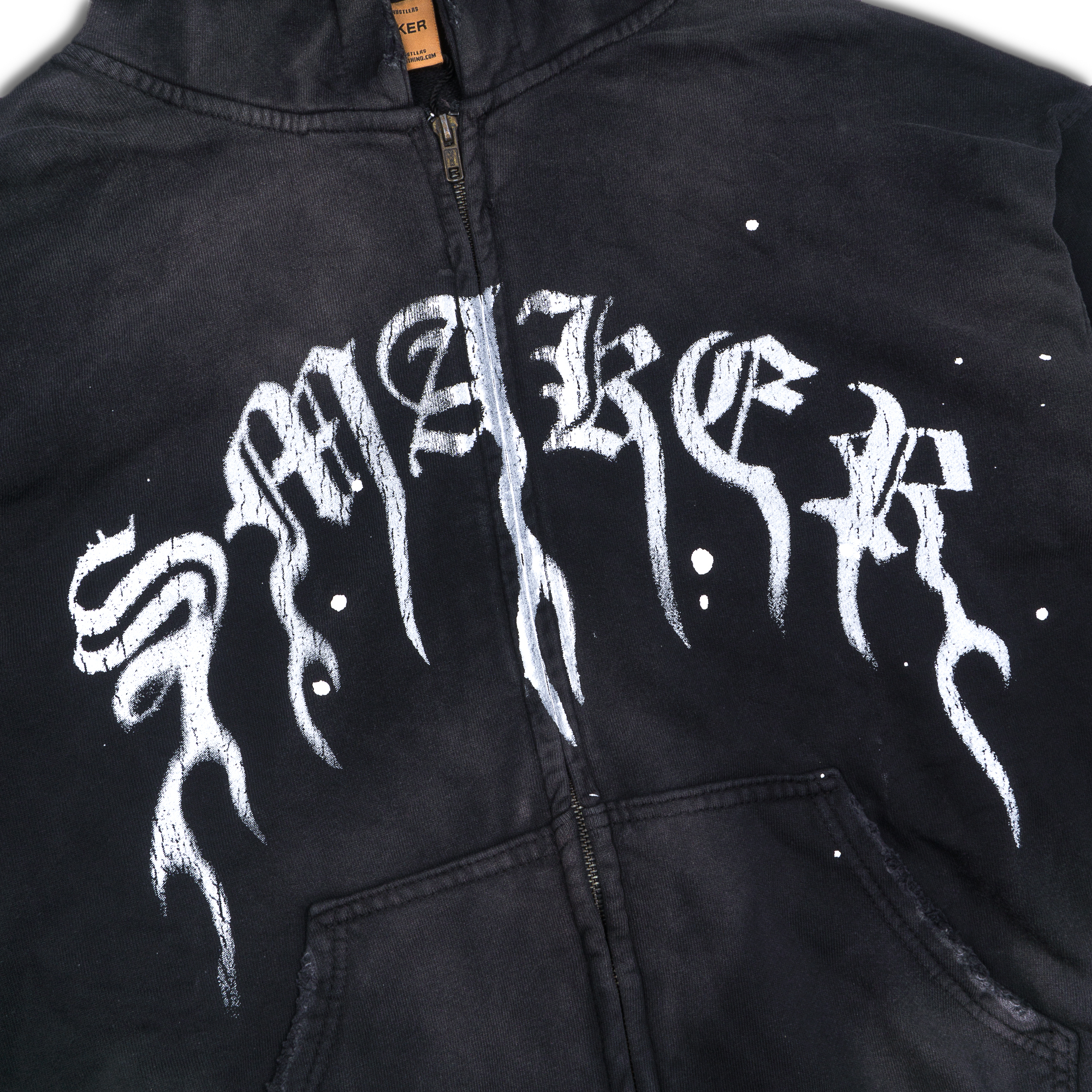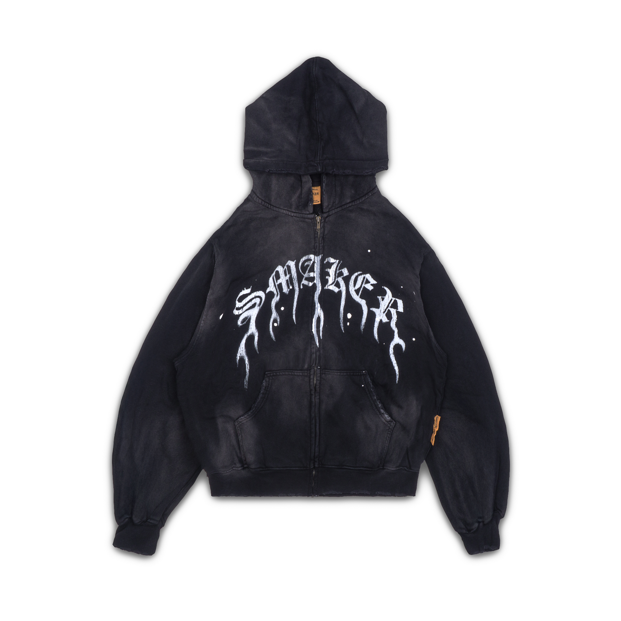 FLAME $MAKER WASHED ZIP HOODIE IN BLACK