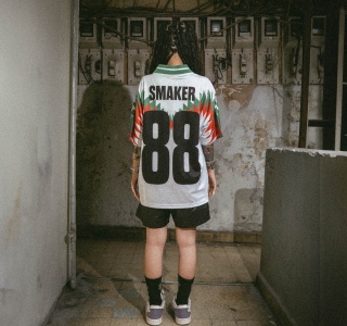 SMAKER STUDIO MESH V NECK TEE IN WHITE