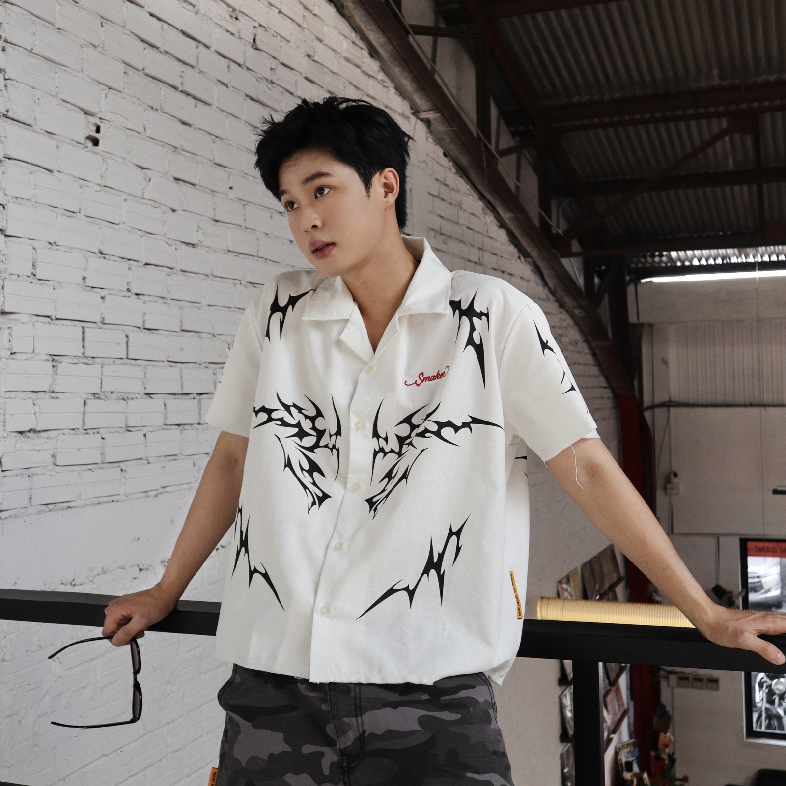 TRIBAL DRAGON SHIRT IN WHITE