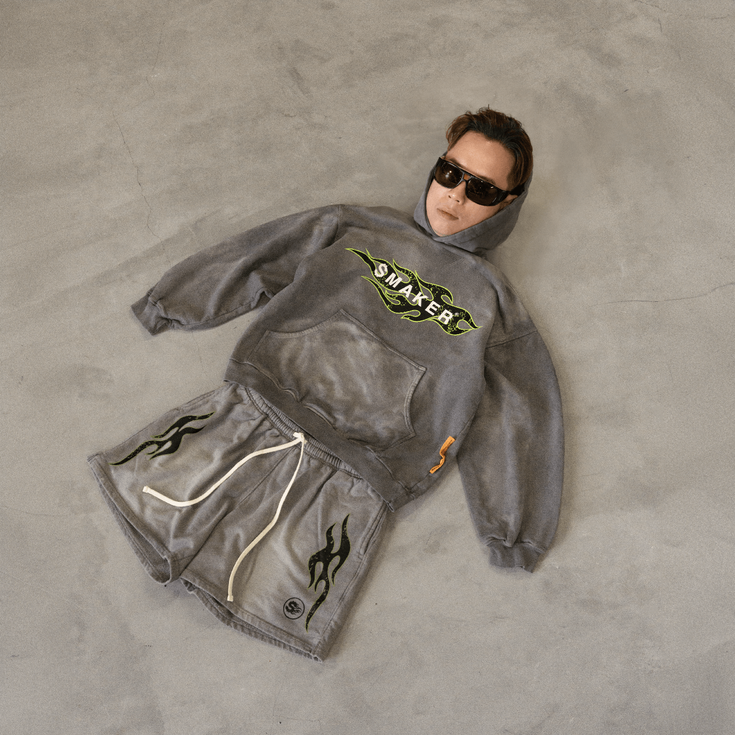 TRIBAL LOGO WASHED HOODIE IN GREY