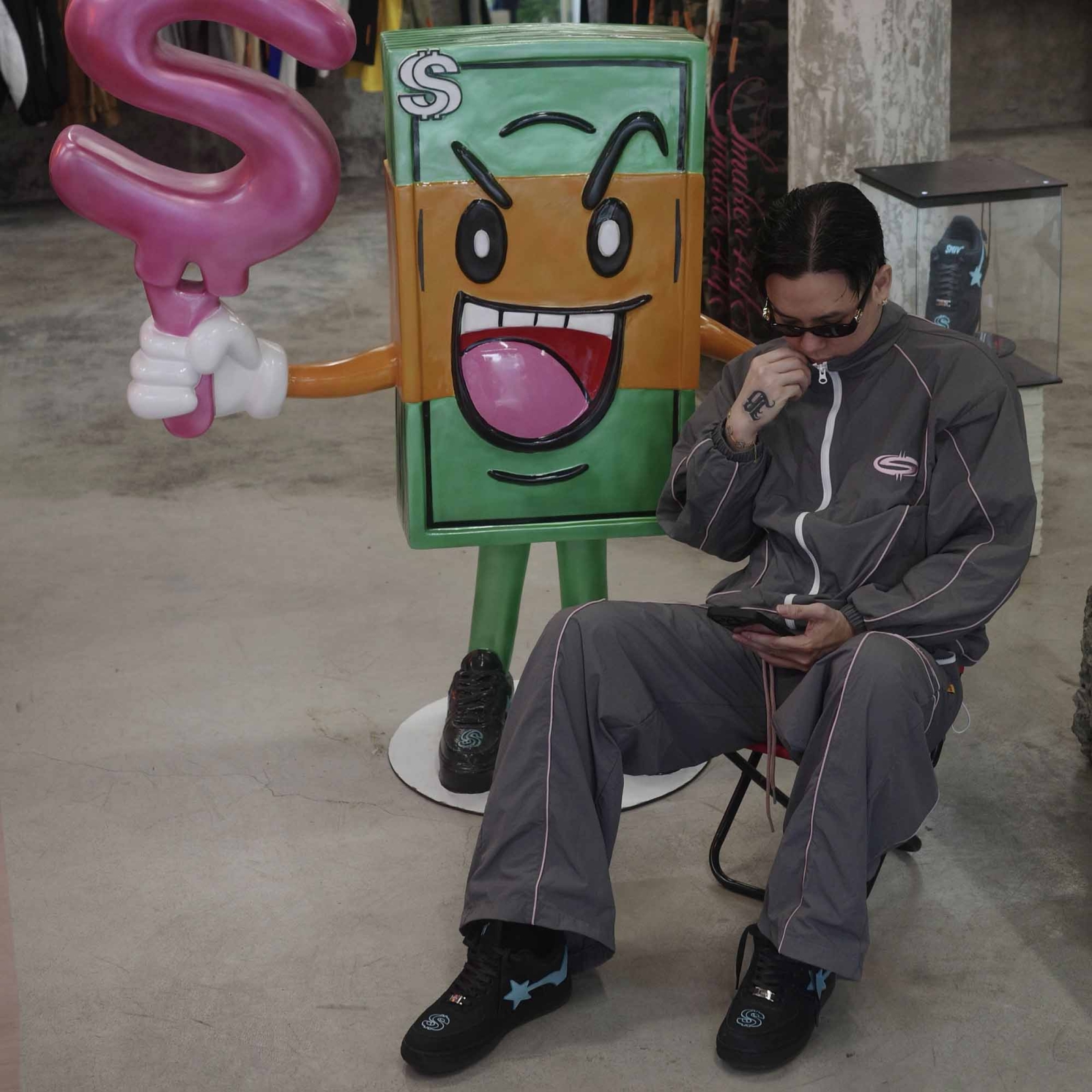 $MAKER NYLON TRACKSUIT PANTS IN GREY